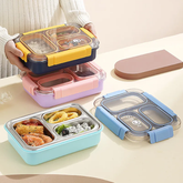 3-Compartment Stainless Steel Lunch Box with Leakproof Lid and Cutlery Set - Portable Food Storage Container for School Office and Picnic Use